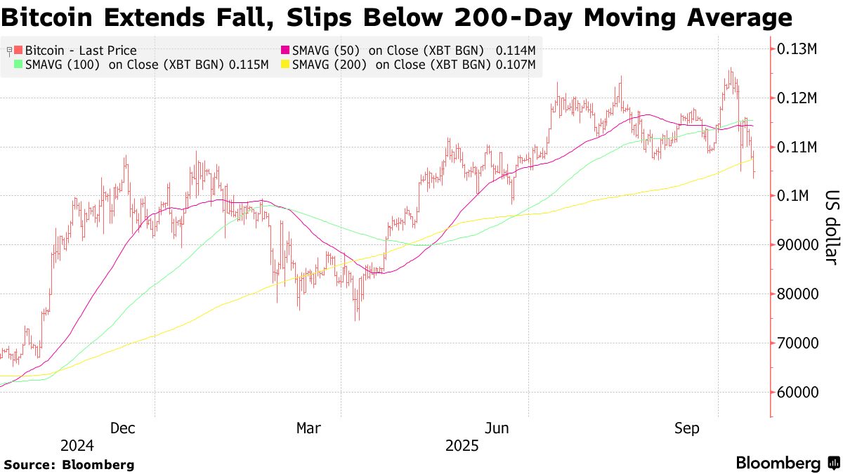 From a realized volatility view, this downturn is a relatively committed one. The move down from Bitcoin’s daily top above just $124k, on October 6th, to the current cycle low on Friday October 17th, circa $103k, represents a ~2.5–3.0 standard deviation collapse, on a 30-day volatility basis. That’s larger than the ~1–1.7 sigma tariff scare of late-May, and the even more moderate wobble in early-August.