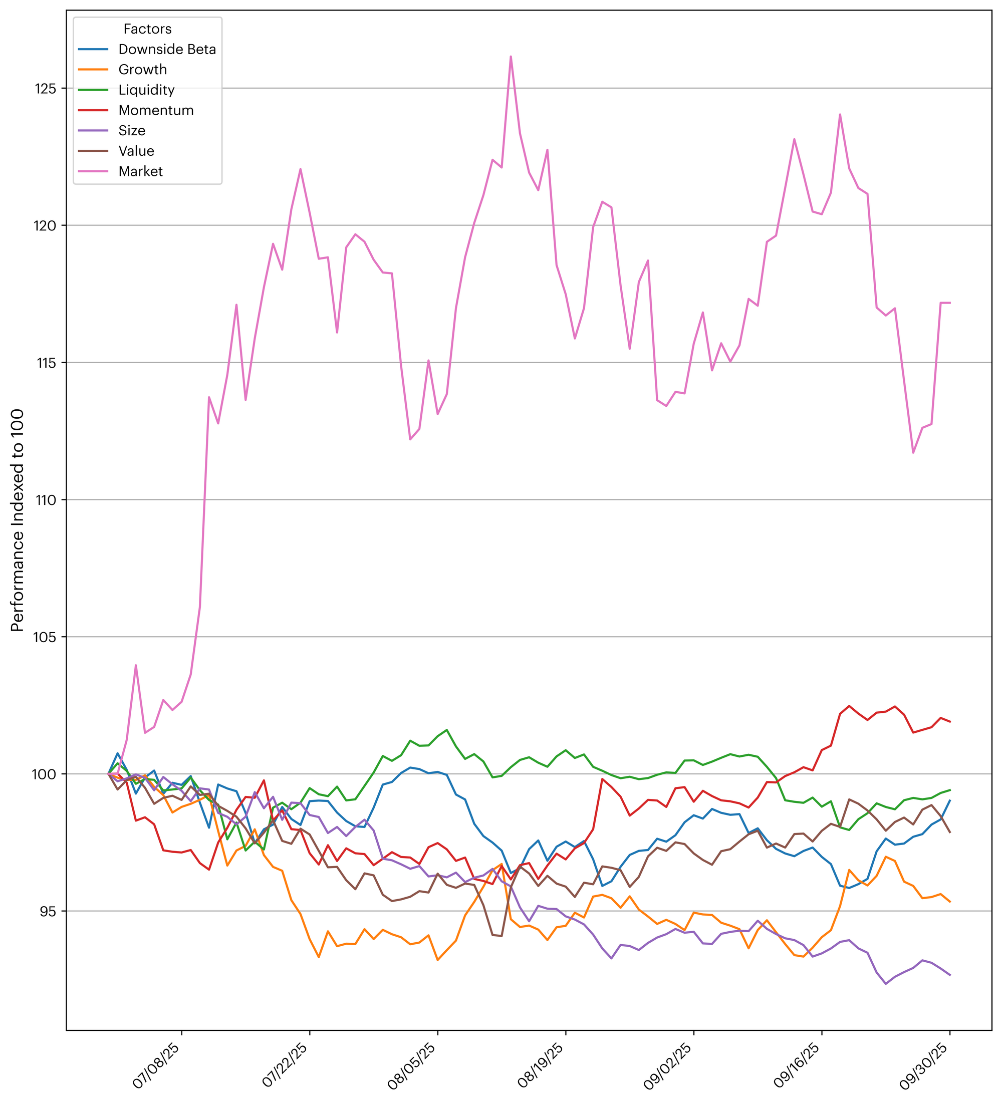 In the third quarter of 2025, Momentum stood out as the best performer on the long side, followed by Value and Downside Beta. On the short side, Growth and Size delivered the strongest results, with Value ranking third. The Q3 factor profile points to a more selective advance: investors were rewarded for trend exposure, while small-cap bias and value tilts detracted at the portfolio level, and defensive exposures (such as Downside Beta and less liquid tokens) acted as a modest drag on performance.