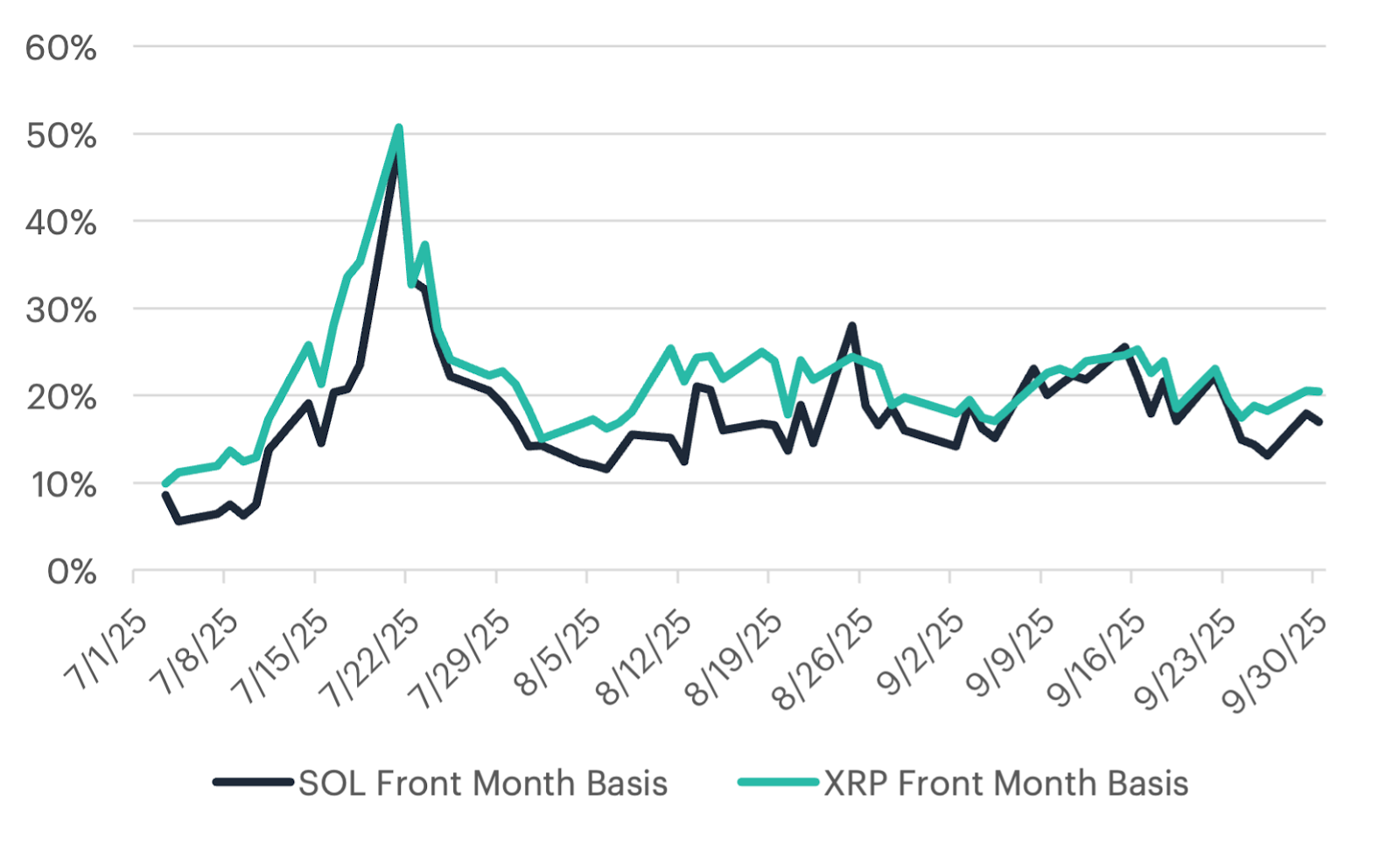Figure 13: Solana and XRP Basis (Source: CF Benchmarks as of 9/30/2025)