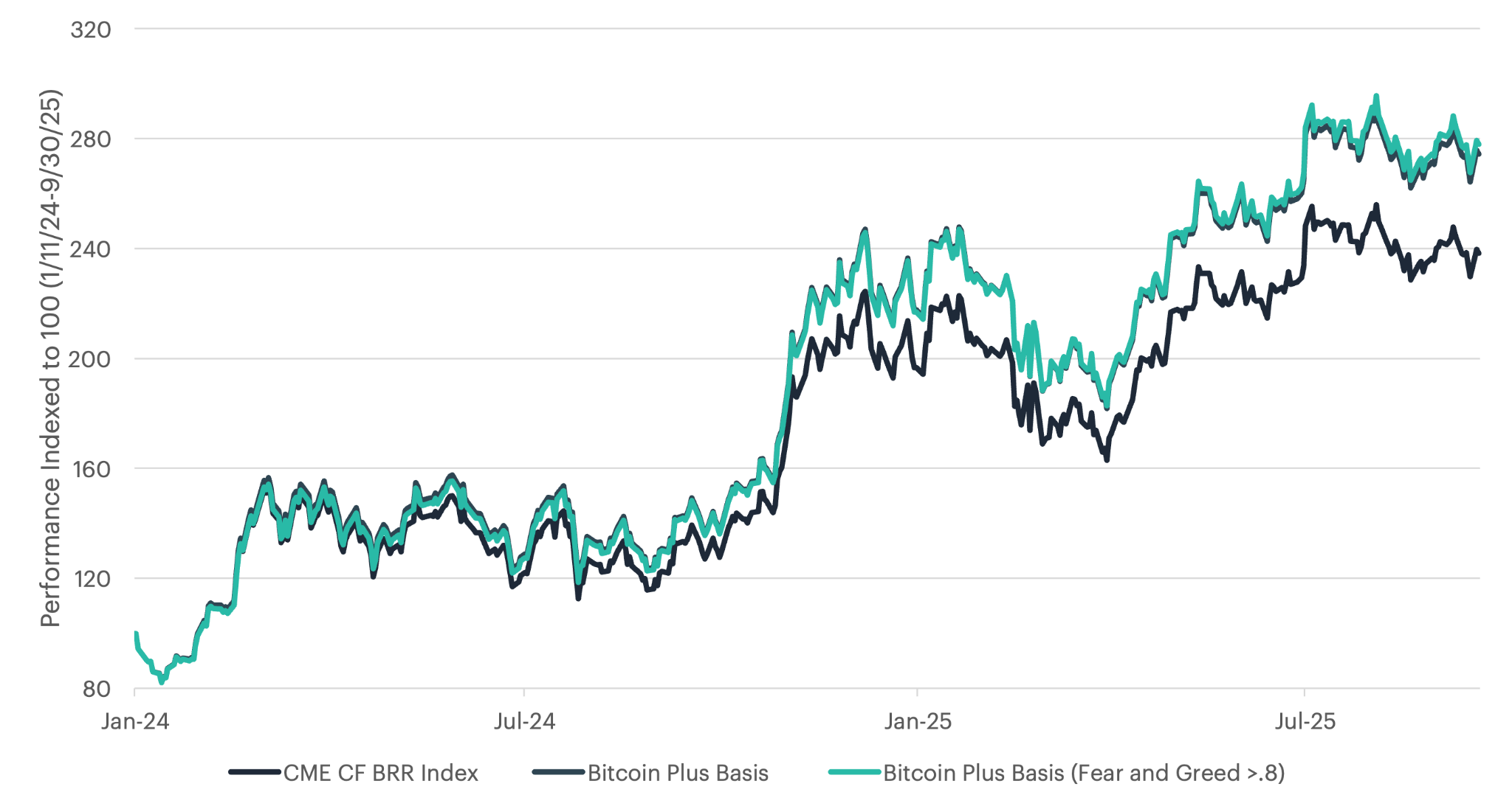 Figure 9: Basis Arbitrage Backtest (Source: CF Benchmarks, Bloomberg as of 9/30/2025)
