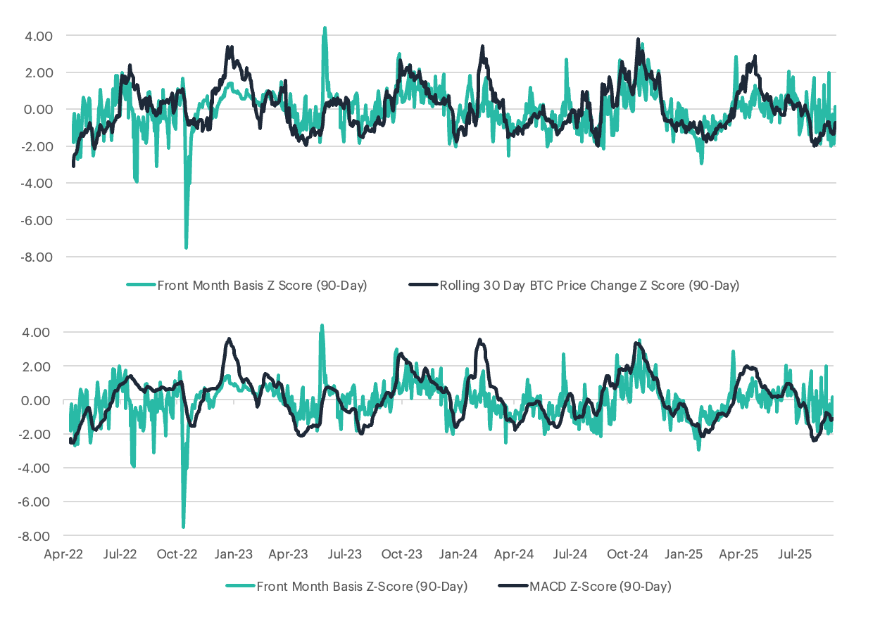 Figure 7: Momentum and Basis (Source: CF Benchmarks, Bloomberg as of 9/30/2025)